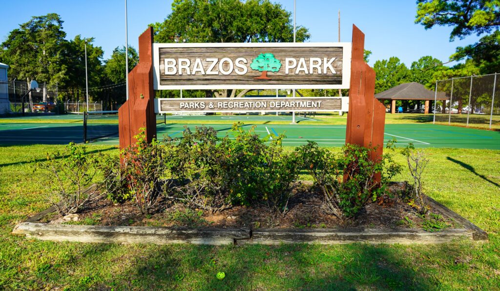 Brazos River Park, stretching across 67 acres along the Brazos River, features a fantastic new playground and pavilion. It boasts miles of trails, including paved paths for walking, scootering, or skating, as well as mountain biking trails. The pump track is a standout favorite!